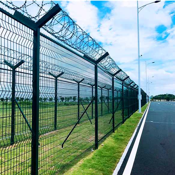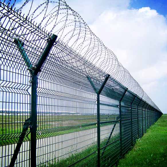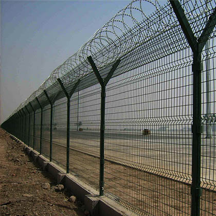 機(jī)場圍網(wǎng) 機(jī)場圍界 機(jī)場護(hù)欄網(wǎng)近年來,被廣泛應(yīng)用在機(jī)場,軍事基地等高安全場所.注:如果在機(jī)場護(hù)欄網(wǎng)頂部加裝刀片刺絲,刀片刺繩后又很好