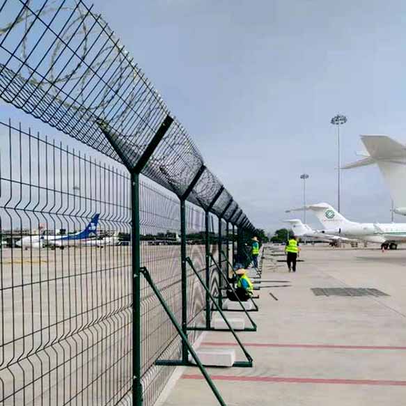 機場隔離網(wǎng)主要用于機場防護使用,產(chǎn)品選用優(yōu)級低碳鋼絲、鋁鎂合金絲,噴塑。經(jīng)過編焊而成;網(wǎng)格結(jié)構(gòu)簡練、便于運輸、安裝不受地形