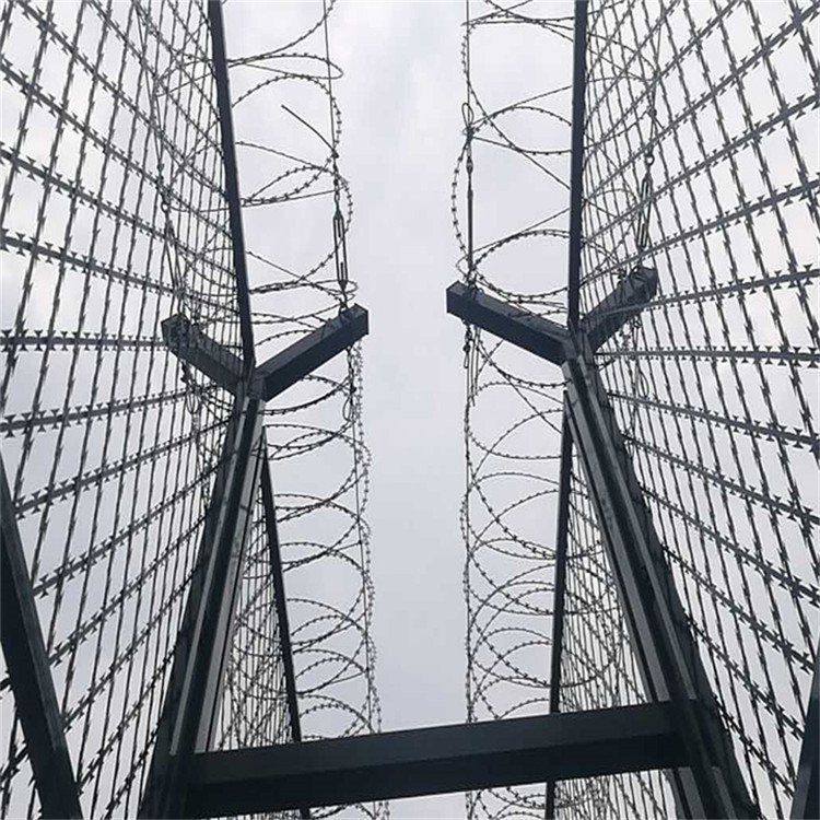 監(jiān)獄護(hù)欄網(wǎng)又稱作“Y型安全防御護(hù)網(wǎng)”,是由V型支架立柱,加強(qiáng)型焊接片網(wǎng),安全防盜連接件和熱鍍鋅刀片刺籠組成強(qiáng)度和安全防御性級(jí)別很高?,F(xiàn)被廣泛應(yīng)用在監(jiān)獄,軍事基地等高安全場(chǎng)所。注:如果在監(jiān)獄護(hù)欄網(wǎng)頂部加裝刀片刺絲、刀片刺繩后又很好的增強(qiáng)了安全防護(hù)性能。采用電鍍、熱鍍、噴塑、浸塑等防腐形式,具有很好的抗老化、抗曬、耐候等特點(diǎn)。