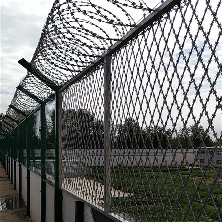- 2025-10-21監(jiān)獄圍墻隔離網(wǎng)、監(jiān)獄圍墻刀片隔離網(wǎng) 菱形焊接刀片刺網(wǎng)